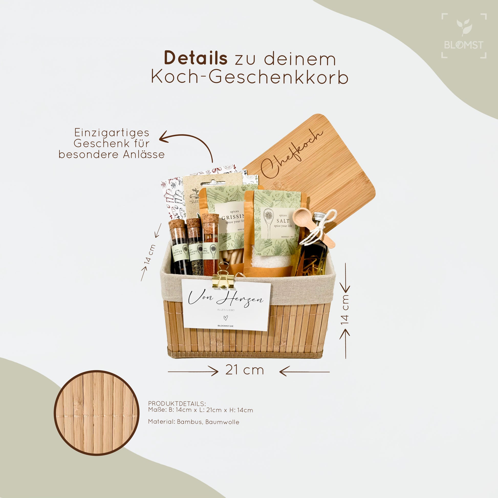 Unser Koch Geschenkkorb - gefüllt mit hochwertigen Produkten rund um das Thema kochen.